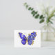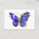 Smycken, blå, safir, mousserande blomfjäril med vinge som dekoreras med blå, ädelblommor med guld löv på vit bakgrund.