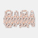 Den här designen har en vit och lekfull mönster med mjuk rosa bakgrund. Sprid över designen är söta, karikatyraktiga döskallar med stora, ihåliga öga-socketar, ge dem en vänlig och icke-hotfull vibe.