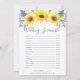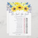 Landsbygdsbröllopsfestens spelkort matchar vår Flowerfields bröllopsfestkollektion och har en övre kant av gula akvarellsolfjäll och små marinblå knoppar. Dubbelsidigt kort låter dig få två spel på en gång! Framsidan har Han sa, Hon sa och baksidan har ett bröllopstemat ordsökspel. Personalisera med brudens namn och datum för festen. För ytterligare anpassning, kontakta mig gärna!
