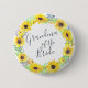 Identifiera spelarna i nyckel vid möhippan med våra knappar för blommigt av för den ryska chicen land. Knappen har en vattenfärgsutandning av solblommor i gulten och marinblå blomknoppar, med "bruden av blommigten" inskriven i handskript. Designad för att matcha vår flödesfältsamling.