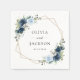 Lägg till en personlig beröring till bröllop firande med dessa snyggtar och minnesvärda party! Konstruktionen har blommor med marin och blå vattenfärg, grönt och guld ram på vit bakgrund.