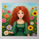 Den här vita poster har ett vackert, vackert, fint, rött hår omgivet av en blandning av ro, daisy och solblommor. Avslutat i ett färgtryck av oljeväxter.