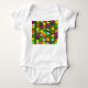 Denna bodykostym i baby har en modern utformning i mitten av århundradet av överlappande trianglar i färg i blommor som går lodrätt på en fält av grönten.