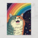 En bedårande fluffig katt i rymden med en regnbåge i en retro stil AI-genererad konst