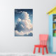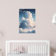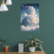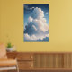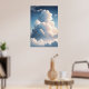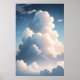 Bilden skildrar ett brinnande himmel fyllt med fluffa, vita moln mot en bakgrund av ett fritt blå himmel. Molnen ordnas i en dynamisk sammansättning, med ett stort moln som binder samman sig och som dominerar bildens centrum. Solljuset kastar en varm glöd på molnen och skapar en känsla av lugn och lugn.
