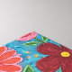 Cute fluffy gray striped cat standing in red, pink, yellow, orange and blue folk art flowers.