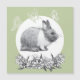 Pencil teckning.Artist by Zolotareva.Fluffy the kanit.teckning en blyertspenna av en hare och blommor av kamomiler med applicering av ljust grönt bakgrunder och vektorfjärilar.