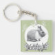 Pennteckning. Konstnär Zolotareva. Pennteckning av en hare och prästkragar med applicering av en ljusgrön bakgrund och vektorfjärilar