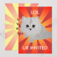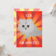 En beundransvärd, vit kattunge på en pulserande röd bakgrund. Den här söta inbjudan är perfekt för alla tillfälle! Originalkonsten © Lydia "PrairieGhost" Jacobs 2010