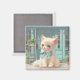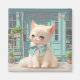 Fluffy Kitten med Blue Bow på bakverk Magnet