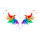 Fluffy regnbåge vingar på vit bakgrund.