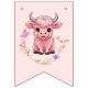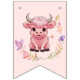 Fluffy Rosa Highlands Scottish Cow, den här designen har en söt och Fluffy Rosa Highlands Scottish Cow med drömt ögon, omgiven av blommor. En snygg design för vilken Barn som helst Födelsedagsfest.