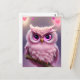 Fluffy Rosa Uggla med hjärter Vykort