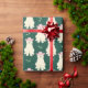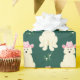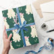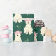 Papper julomslutning med fluffyvit hund med rosa cowgirl hat och grönt jul botanicals.