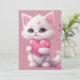 Fluffy White Kärlek Kitten, den här designen har ett sött och snyggt Fluffy White Kärlek Kitten som håller ett rosa hjärta.