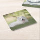 Fluffy White Keeshond Puppy Underlägg Papper Kvadrat