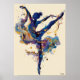 Fluid Ink Ballerina – Blue and Gold Abstract Dance Poster