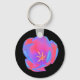 Den här nyckelkedjan för söt har ett vackert foto av en tulpanform. Fotografiet har blivit artificiellt färgad, vilket har lett till fluorescerande tulipp. De yttre petalerna är färgad med blå och röd nyans, medan de inre petalerna visar skuggor av rosa och lila. Blomens centrum är en ljus gult. Den enkla svarta bakgrunden visar den här blommans fantastiska skönhet.