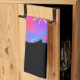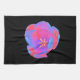 Den här kökshandduken i fantastisk har ett vackert foto av en tulip. Fotografiet har blivit artificiellt färgad, vilket har lett till fluorescerande tulipp. De yttre petalerna är färgad med blå och röd nyans, medan de inre petalerna visar skuggor av rosa och lila. Blomens centrum är en ljus gult. Den enkla svarta bakgrunden visar den här blommans fantastiska skönhet.