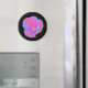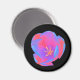 Den här söt magneten har ett vackert foto av ett tulpanfoto. Fotografiet har blivit artificiellt färgad, vilket har lett till fluorescerande tulipp. De yttre petalerna är färgad med blå och röd nyans, medan de inre petalerna visar skuggor av rosa och lila. Blomens centrum är en ljus gult. Den enkla svarta bakgrunden visar den här blommans fantastiska skönhet.