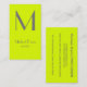 affärskort av lodrät med en solid fluorescerande gult (#DFFF00) och ett fet monogram.Anpassa båda sidors höger nu. Alma Wad är modern och snyggt. Den kommer i ett paket på 100.