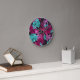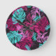 Fluorescerande tropiska handflatan-löv rund klocka