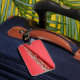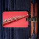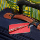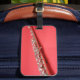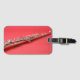 Lutningsbild av ett flute musikinstrument på rosa bakgrund. Tur- och ljuspresentidé för en slöjd student- eller skogslärare.