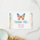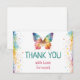 Personalized rainbow butterfly thank you card featuring a vibrant watercolor butterfly with soft pastel splashes and delicate star accents. Customized with your child’s name, this sweet and colorful design is perfect for sending heartfelt appreciation after a first birthday celebration.