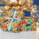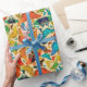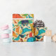 Fjärilen som ska älskare gläder i detta papper som täckas med fjärilar skuggar in, av blått, guld och rött på en beige bakgrund.
