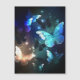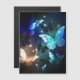 Fantastisk, glödande, blå och gult, nattfjäril mot mörkens bakgrund.