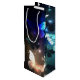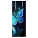 Fantastisk, glödande, blå och gult, nattfjäril mot mörkens bakgrund.