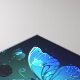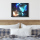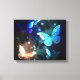 Fantastisk, glödande, blå och gult, nattfjäril mot mörkens bakgrund.