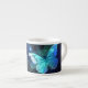 Fantastisk, glödande, blå och gult, nattfjäril mot mörkens bakgrund.