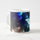 Fantastisk, glödande, blå och gult, nattfjäril mot mörkens bakgrund.