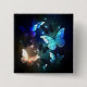Fantastisk, glödande, blå och gult, nattfjäril mot mörkens bakgrund.