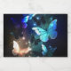 Fantastisk, glödande, blå och gult, nattfjäril mot mörkens bakgrund.