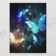 Fantastisk, glödande, blå och gult, nattfjäril mot mörkens bakgrund.