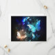 Fantastisk, glödande, blå och gult, nattfjäril mot mörkens bakgrund.