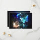 Fantastisk, glödande, blå och gult, nattfjäril mot mörkens bakgrund.