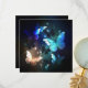 Fantastisk, glödande, blå och gult, nattfjäril mot mörkens bakgrund.
