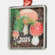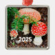 Fotografi av en grupp rödfläcksflugsvampar under gräs träd