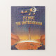 Flyg Väster Vackert detaljerat, varm orange vintage stil-reseaffisch till Förenade Stater.