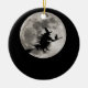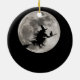 Flyg häxa med en ljus måne bakom henne julgransprydnad keramik