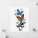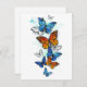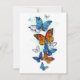 Flygande, skarp, blå fjärilsmorfo och orange-marschfjäril på vit bakgrund. Morpho. Monarch-fjäril. Design med fjärilar.