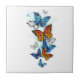Flygande Butterflies Morpho och Monarch Kakelplatta