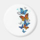Flygande, skarp, blå fjärilsmorfo och orange-marschfjäril på vit bakgrund. Morpho. Monarch-fjäril. Design med fjärilar.