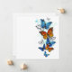 Flygande, skarp, blå fjärilsmorfo och orange-marschfjäril på vit bakgrund. Morpho. Monarch-fjäril. Design med fjärilar.