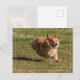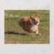 En söt walesisk Corgi fotograferad medan den springer över ett gräsbevuxet fält under våren.