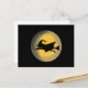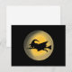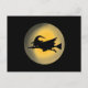 Julpostkort tryckt med Flygande elak häxa silhuett Av TheFabricSeal är en läskig trollkvinna med sin flygande häxkvast och sin spetsiga koniska häxhatt medan hon snabbt stryker genom den mörka natt himlen och passerar framför den fulla gula Halloween månen.