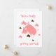 Rosa och bruna flygande grisar och "Vi är äntligen gifta!" text